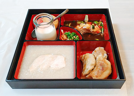 *中華粥-優しい味わいで、老若男女問わずお店でも人気の中華粥。ふっくらとした蒸し鶏が満足感を高めてくれています。