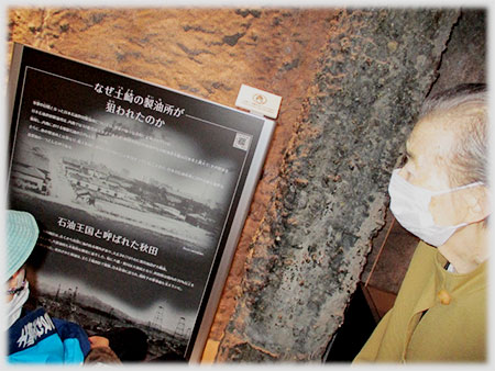 隣の空襲展示ホールには土崎空襲の爪痕、被爆した倉庫の一部などが展示されており