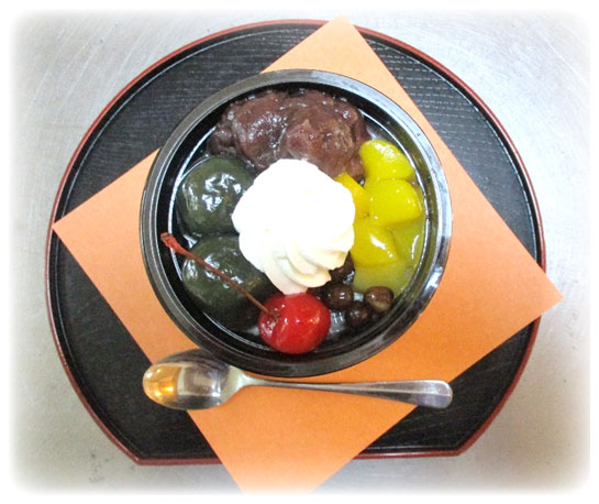 フルーツたっぷりのクリームあんみつです。