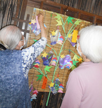 さて、今回は七夕行事の様子をご紹介します。 毎年、入居者様に短冊に願い事を書いて頂き、飾っています。