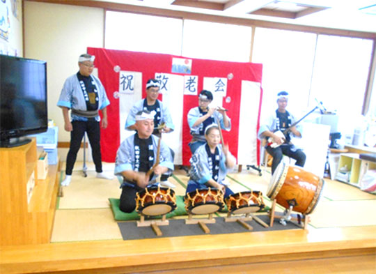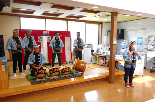 今回、ボランティアとして土崎港祭りのお囃子を披露していただき、入居者様は大喜びされていました。リアルなお囃子を目の当たりにする機会は滅多にないことで、感動もひとしおだったことと思います。