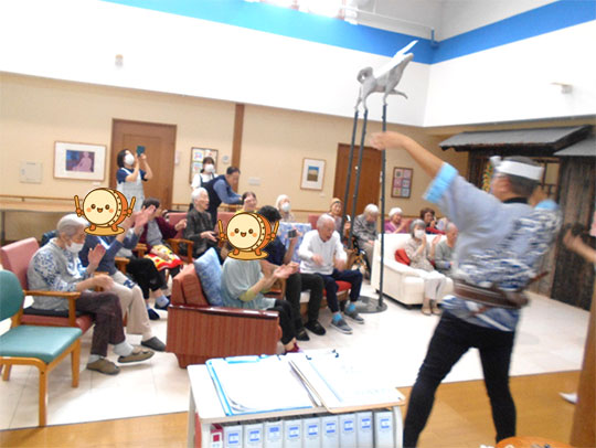 入居者様からは「アンコール!是非また来てほしい!」と大絶賛の声が。その後、直接土崎港保存港和会の皆様に直接交渉される入居者もいらっしゃり、なんと再度お越しいただくことがこの場で決定!入居者様だけでなく、私たち職員もまたの来所を心よりお待ちしております。
