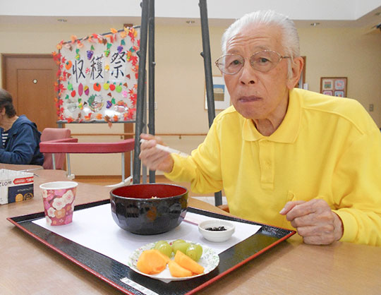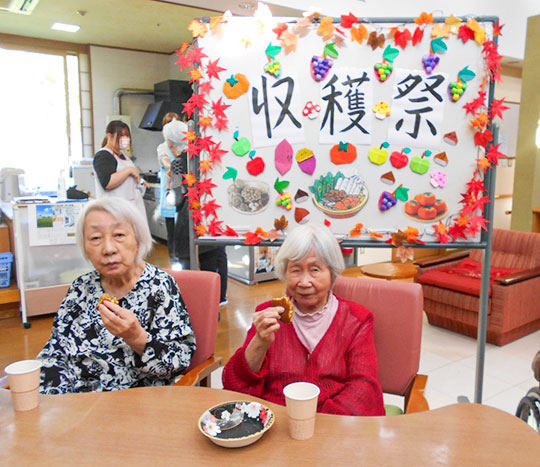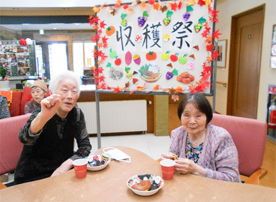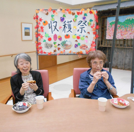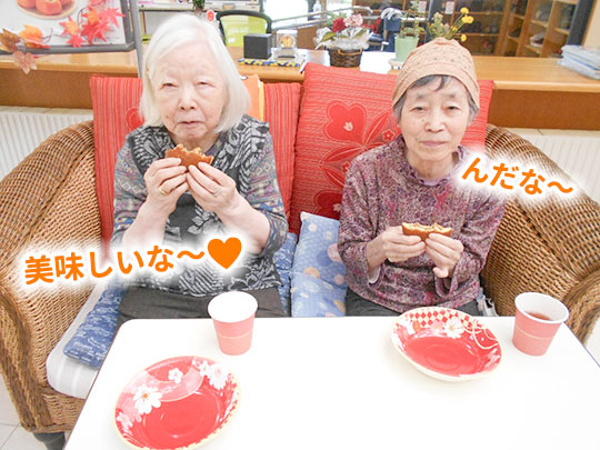みなさん、こんにちは。敷地内の山桜の木や桜の木が黄色やオレンジに紅葉し、秋の深まりを感じている今日この頃です。「きれいになったね~」「絶景だな!」と入居者様も紅葉している木々に惚れ惚れされていました。