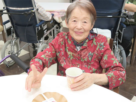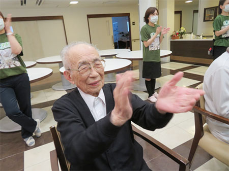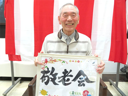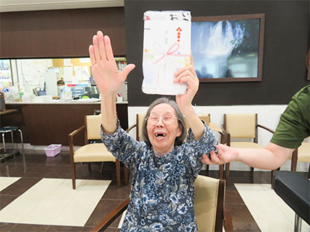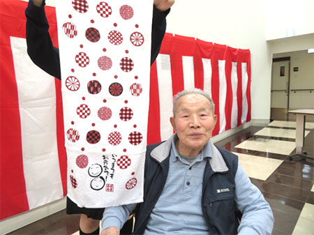 最後に敬老のお祝いとして施設よりタオルを皆さまにプレゼントさせていただきました。