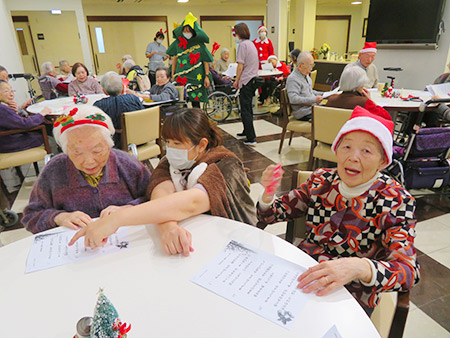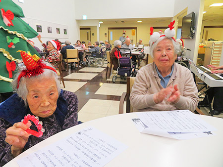 ☆きよしこの夜 ☆ジングルベル ☆東京音頭 ☆秋田県民歌 ☆お正月 ☆よろこびの歌(入居者さんリクエスト)