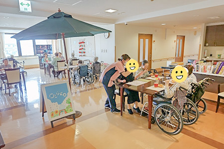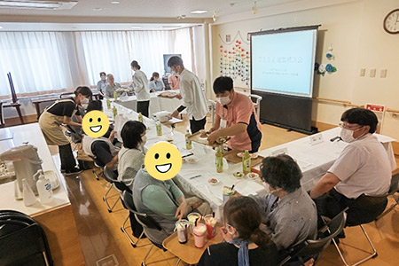 当日は職員によるカフェのイベントも行っており、参加された方へは普段の生活の様子も見て頂く機会を設けました。「職員も入居者も凄く生き生きとしていて良いね」と感想を言って頂きました。加えて普段、入居者様が行事食等で召し上がっているデザートも何種類かを召し上がって頂き、体感してもらいました。「こういう美味しいものを頂いている事が分かり良かった」「実際に体験できて良かった」とのお声を頂いております。