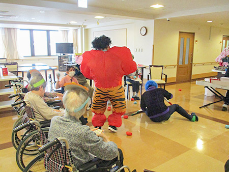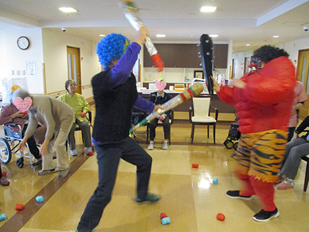今年も皆様の無病息災を願い、職員手作りの鬼が登場すると、フロアは一気ににぎやかな雰囲気に包まれました。