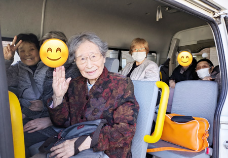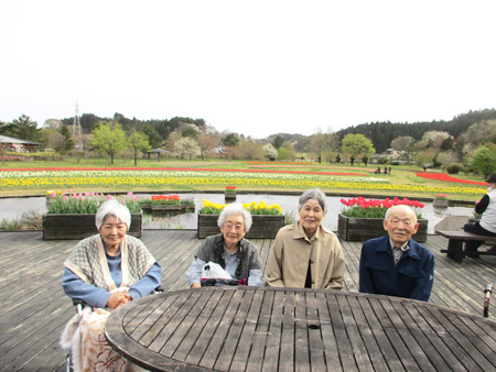 ドライブツアーでは週変わりでコースを変え、草津川・高清水公園、さとみ温泉周辺、ブルーメッセあきたに行って来ました。多少風が強い日もありましたが、桜やチューリップをご覧になって喜ばれている皆さんの笑顔を見ることができ、私たち職員もとても嬉しくなりました☺