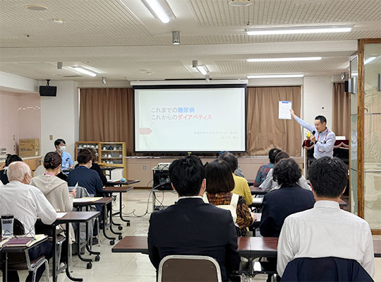 令和7年10月23日(木) 外旭川病院5階ホールにて「第29回 外旭川病院地域講演会」が開催されました。講師は、外旭川サテライトクリニック薬剤師の佐々木龍介さんをお招きし「これまでの糖尿病 これからのダイアベティス」と題して、地域の方々、ケアマネジャーや医療相談員の方など30人ほどの方が参加されました。